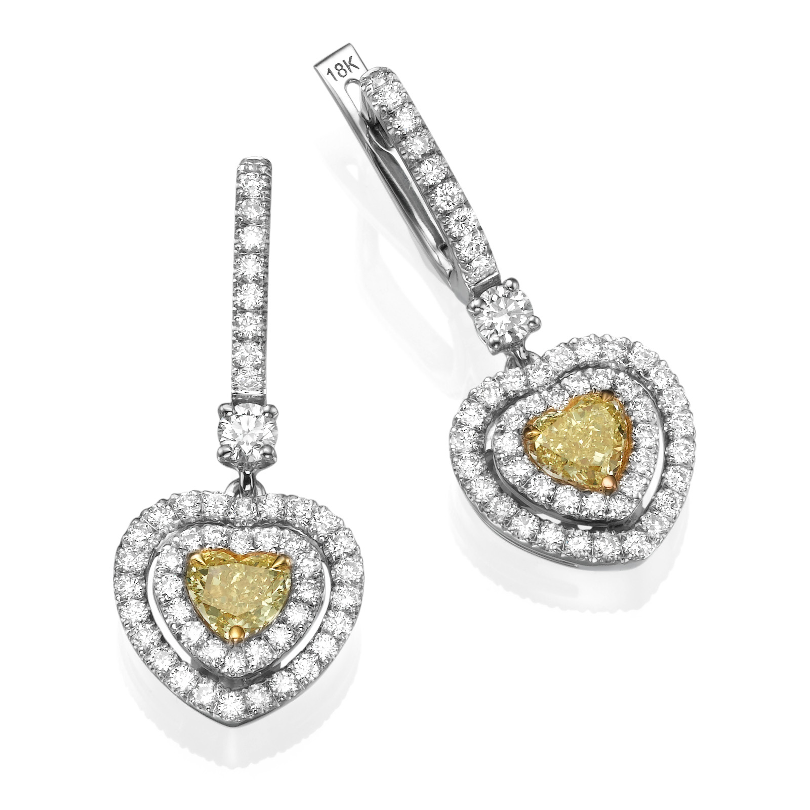 זוג עגילי לב משובצים יהלומים