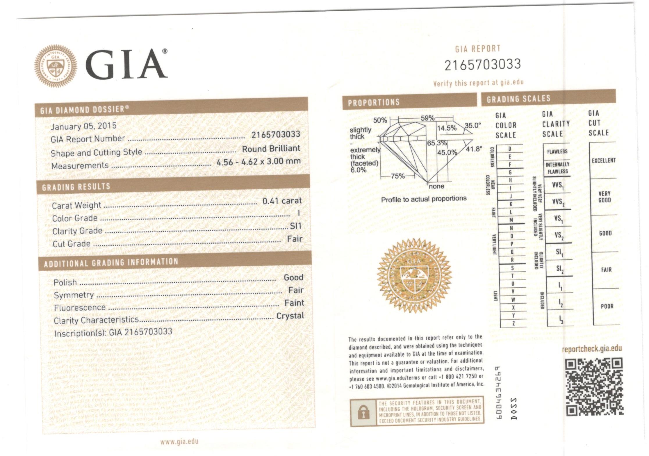 1 - GIA 0.41ct si1 I