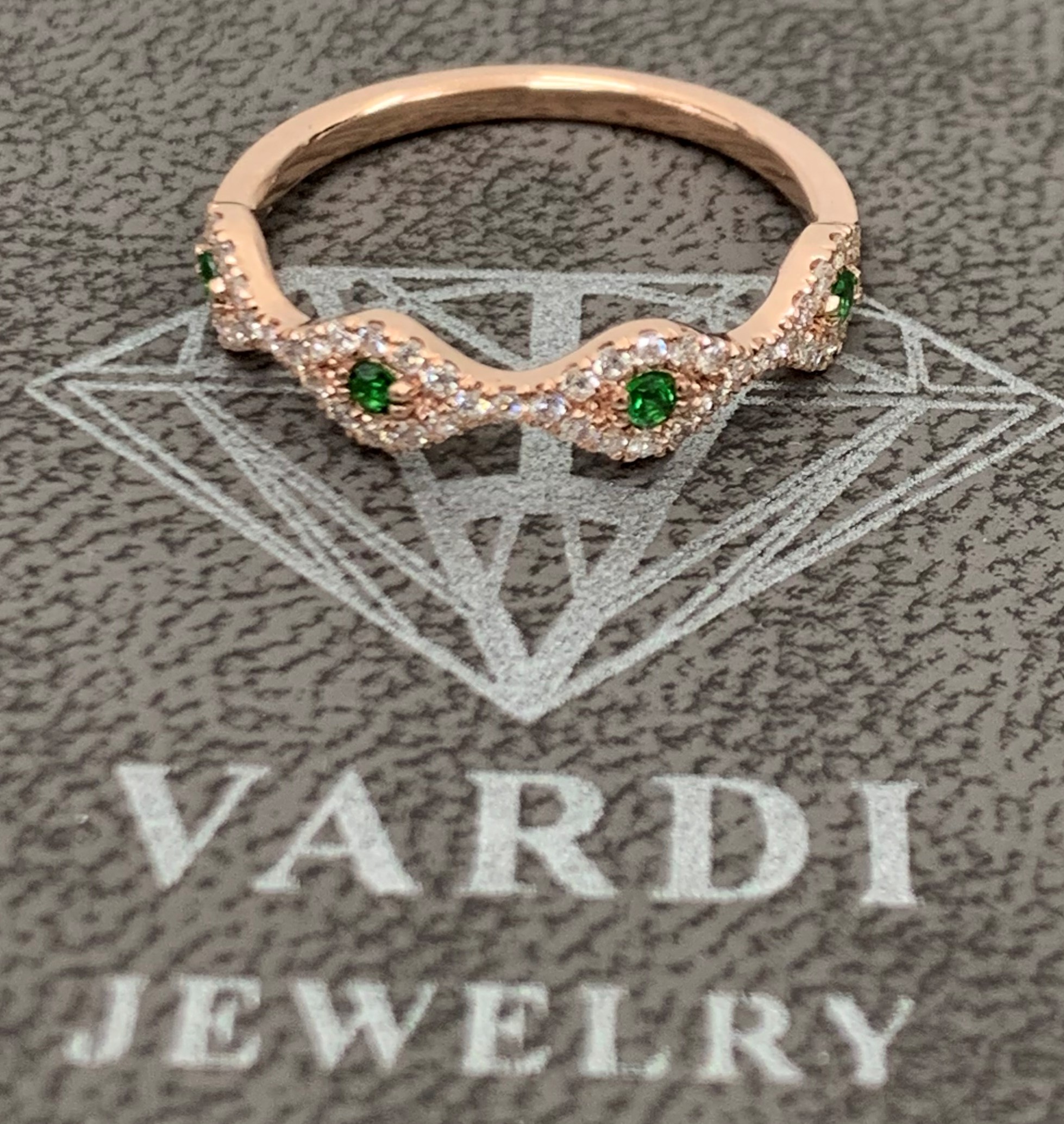 טבעת עיניים משובצת יהלומים וסבורייט